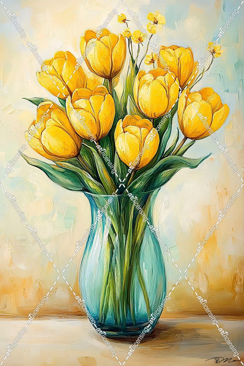 Glass Vase With Yellow Tulips