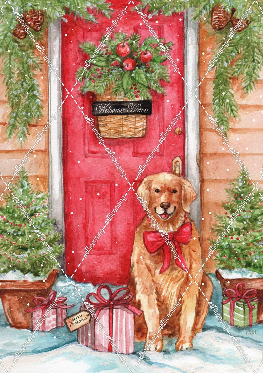 Golden At Christmas Door