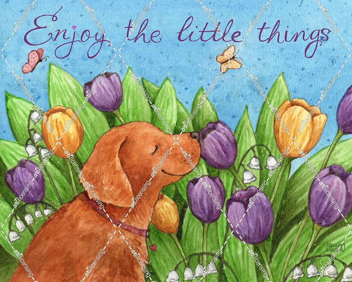 Golden Pup Enjoy Tulips