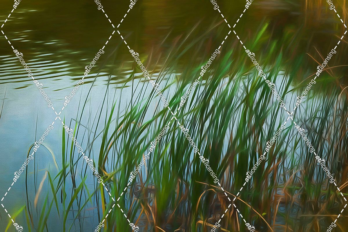 Grass Blades In Wind By Lake At Dusk