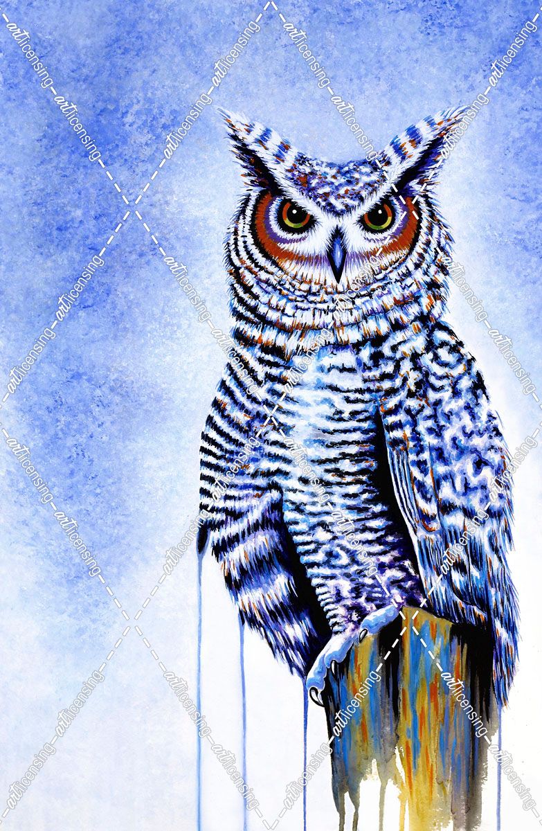 Great Horned Owl In Blue