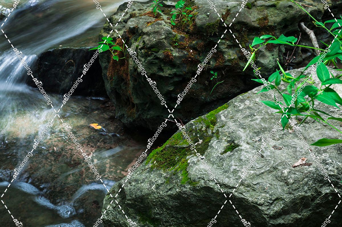 Green Vegetation Growing From Rocks Along Brook 2