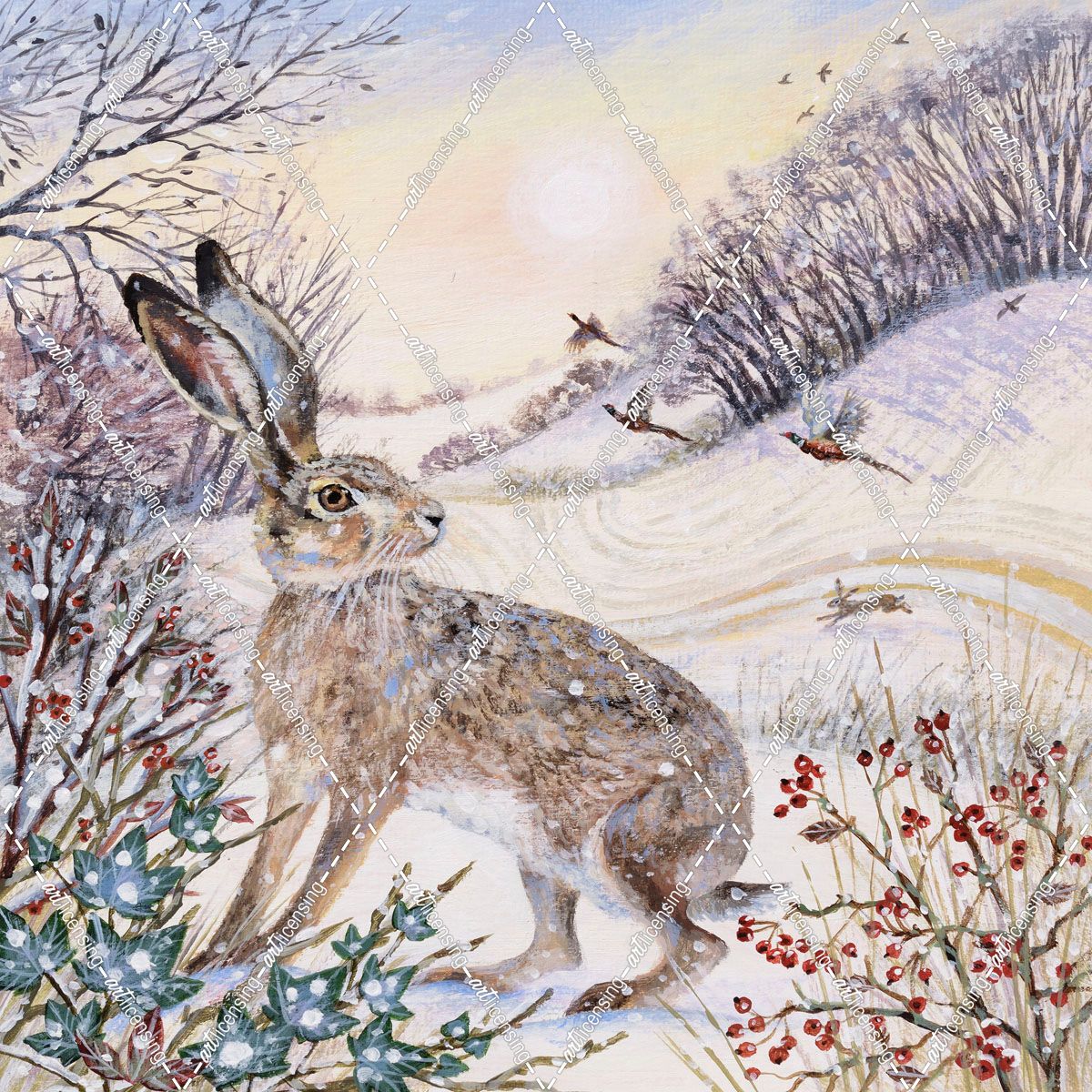 Hare and Flying Pheasants