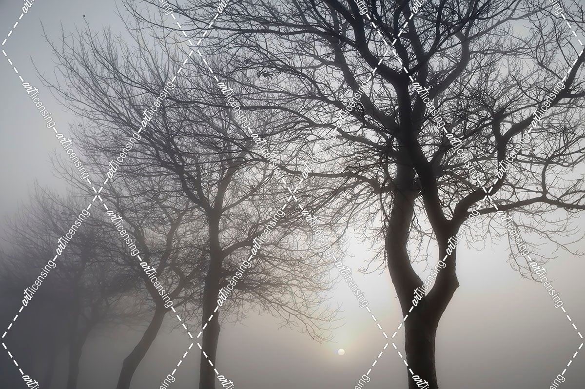 Hazy Dawn with Tree Silhouettes B&W