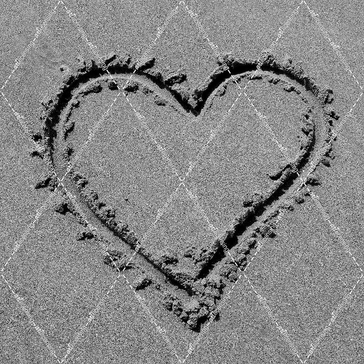 Heart drawn in sand BW