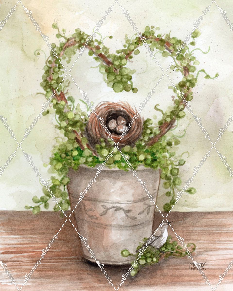 Heart Ivy With Nest And Bird