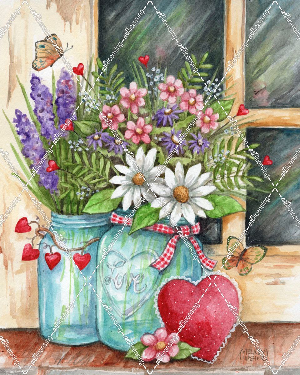 Hearts and Jars With Flowers