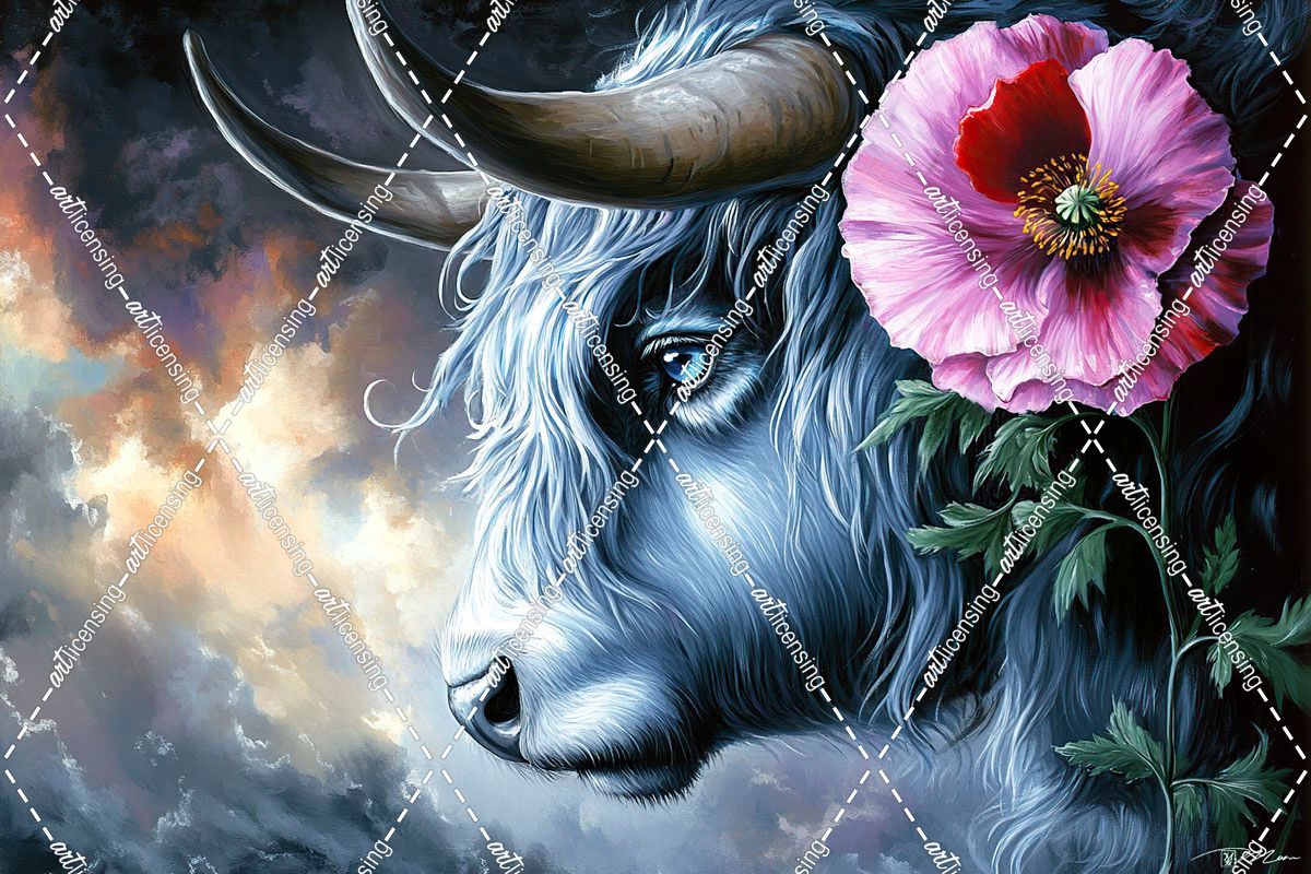 Highland Cow White And Pink Poppy
