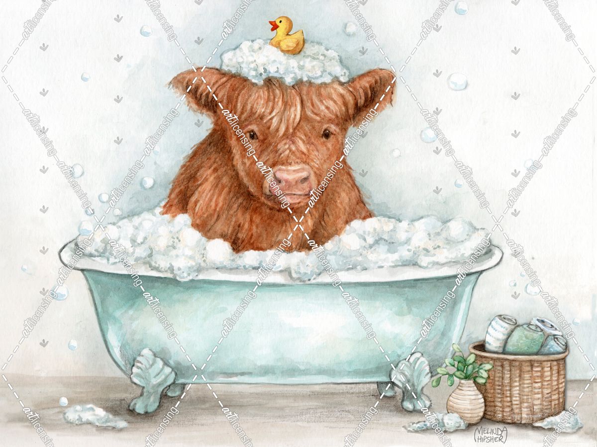 Highland Cow With Rubber Ducky In The Tub