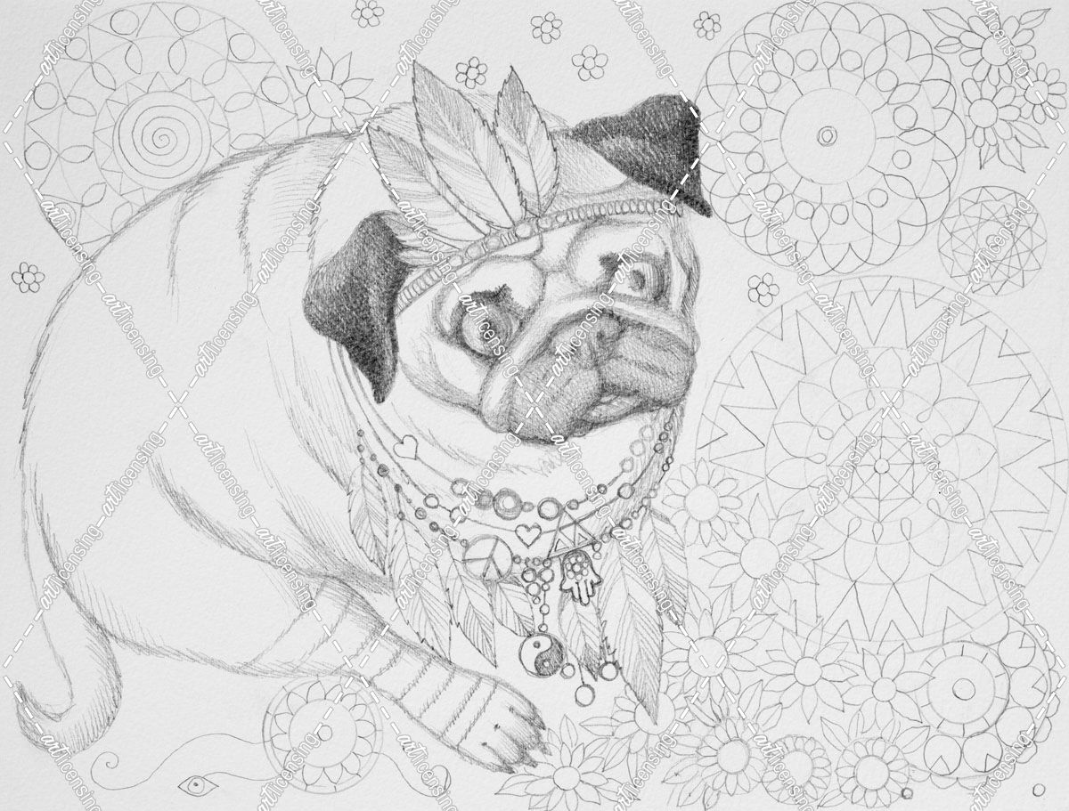Hippie Pug with Mandalas