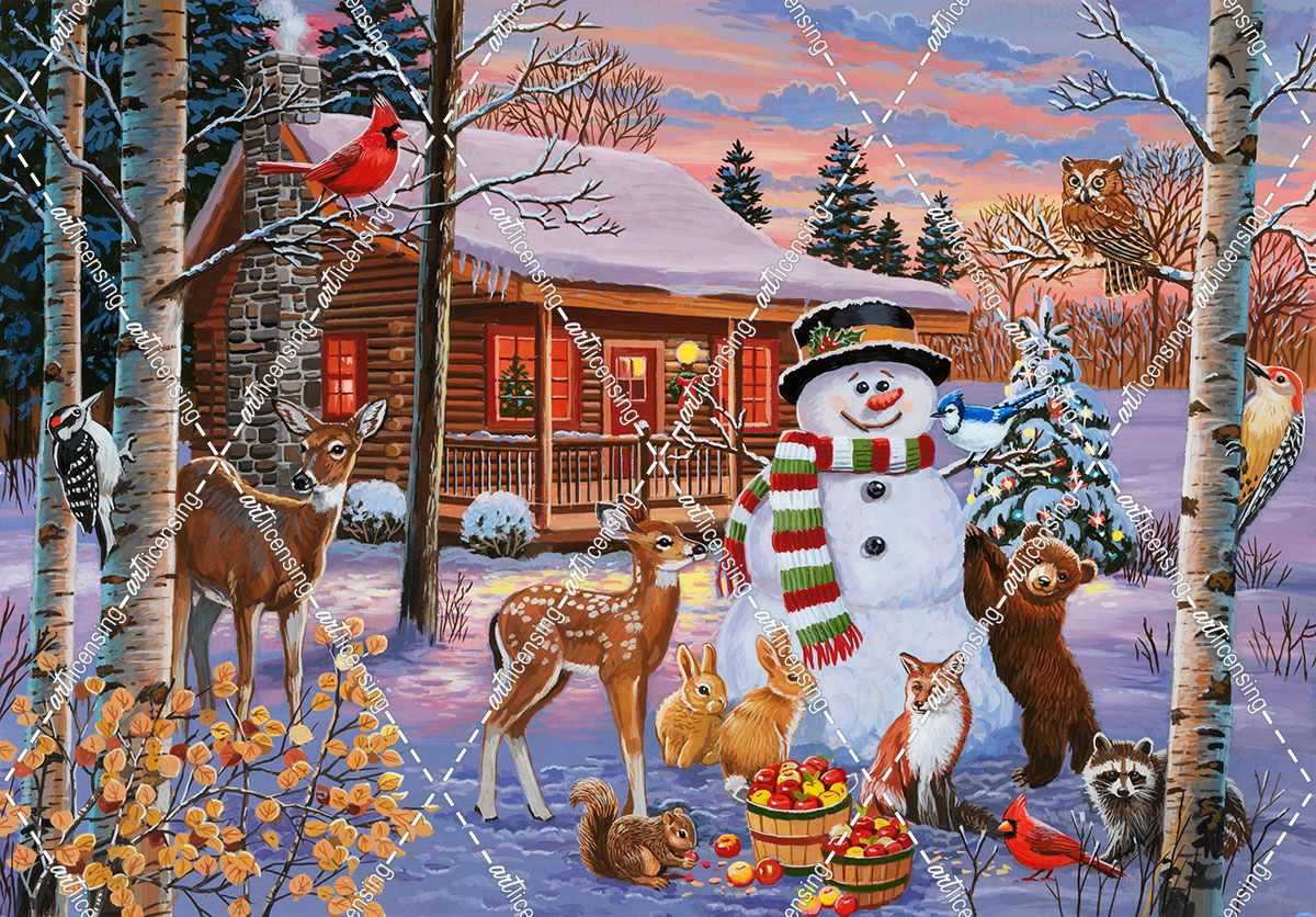 Holiday Cabin with Snowman