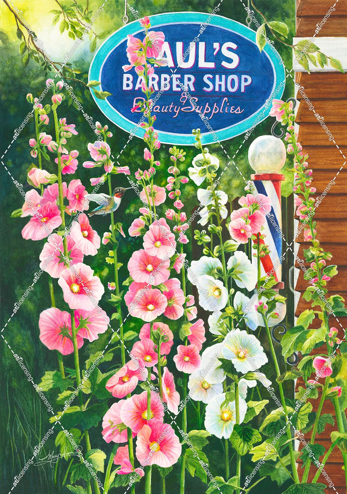 Hollyhocks and A Hummer