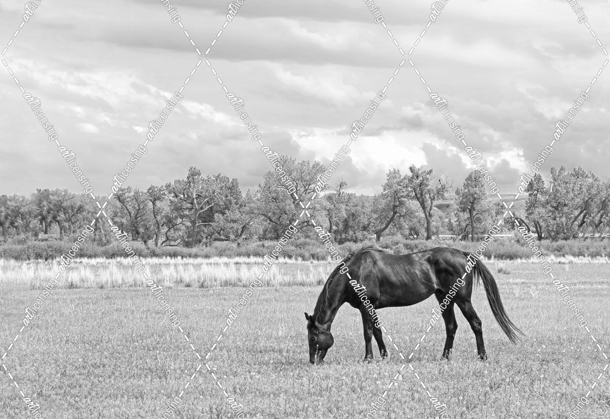 Horse In Field Black And White