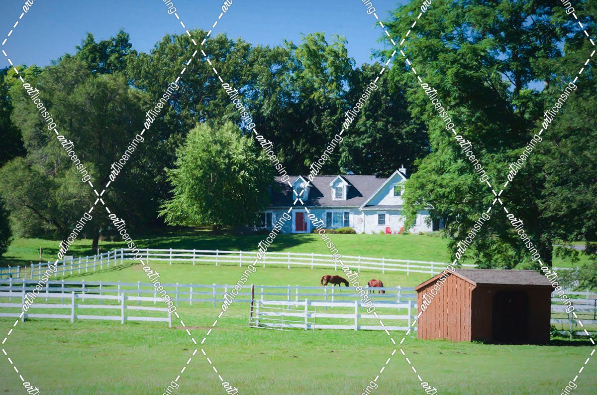 Horses In Fenced Pasture