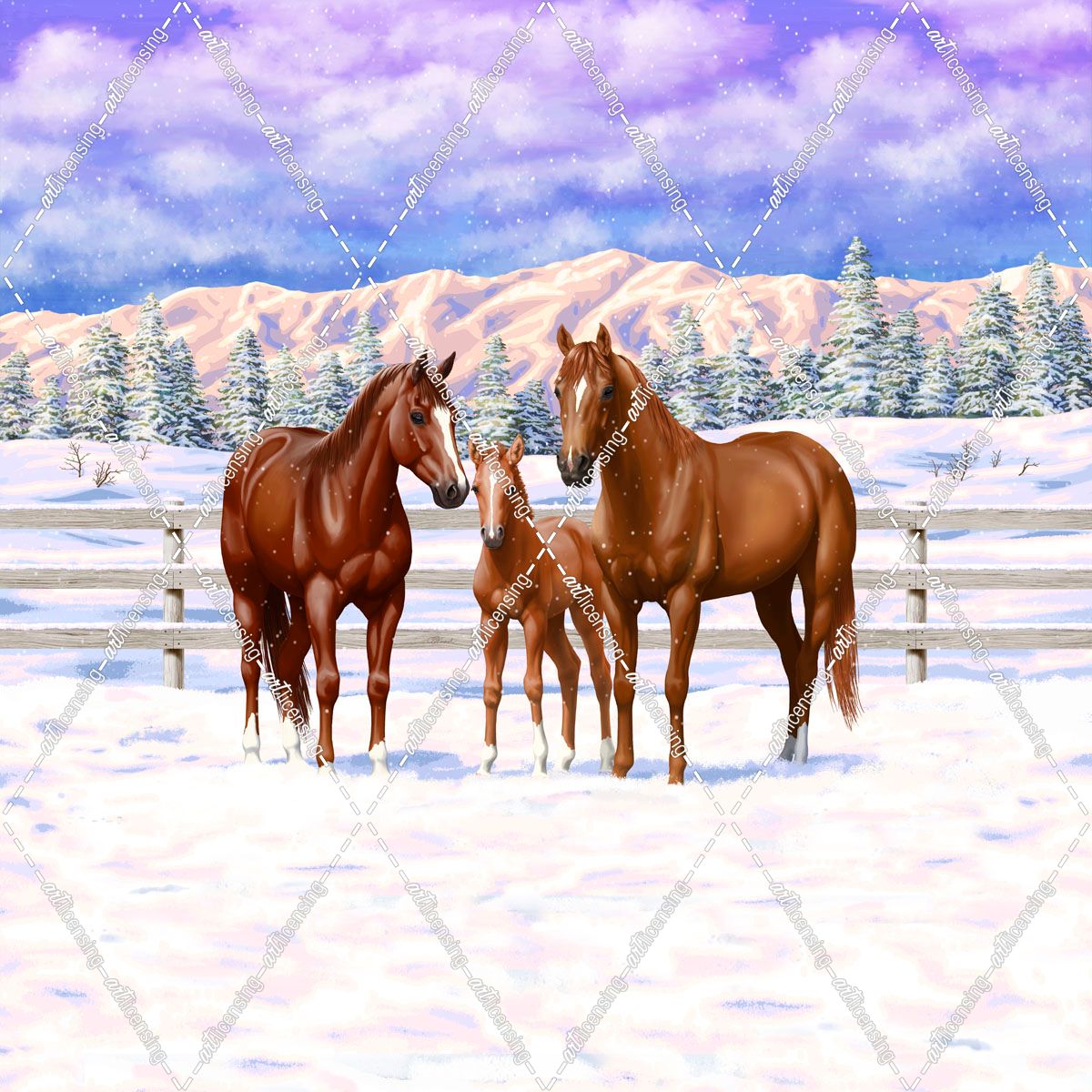 Horses In Snow Chestnut