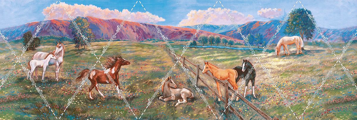 Horses With Fence In Pasture