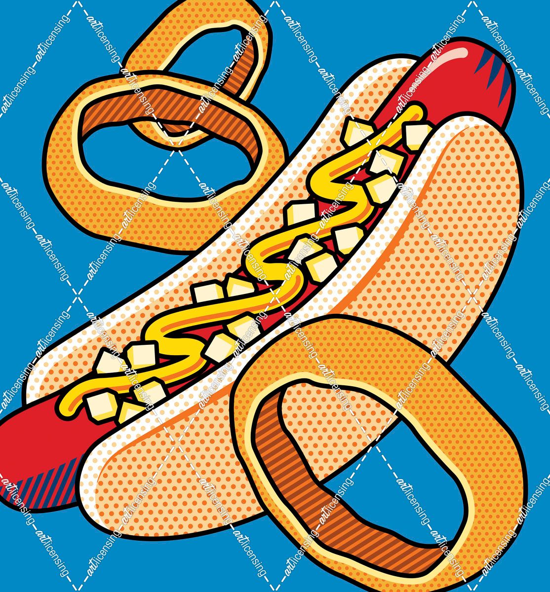 Hot Dog Onion Rings On Blue