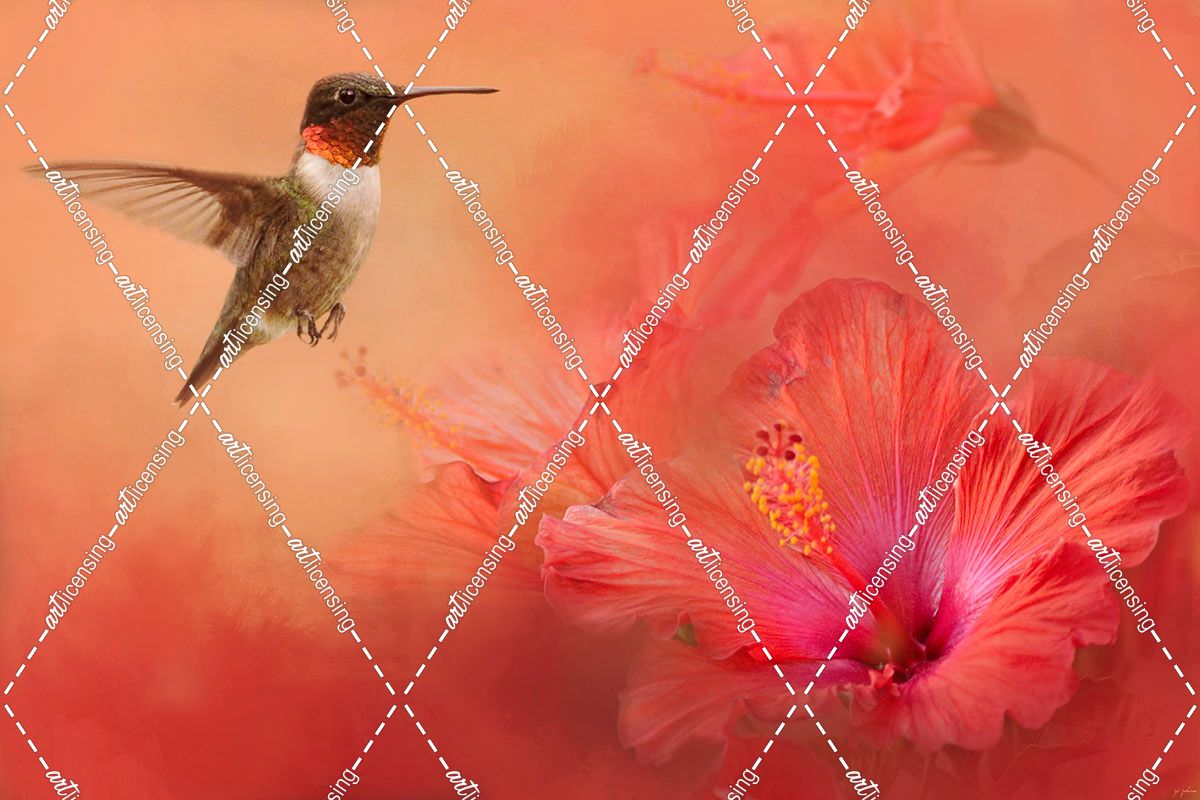 Hummingbird and Peach Hibiscus
