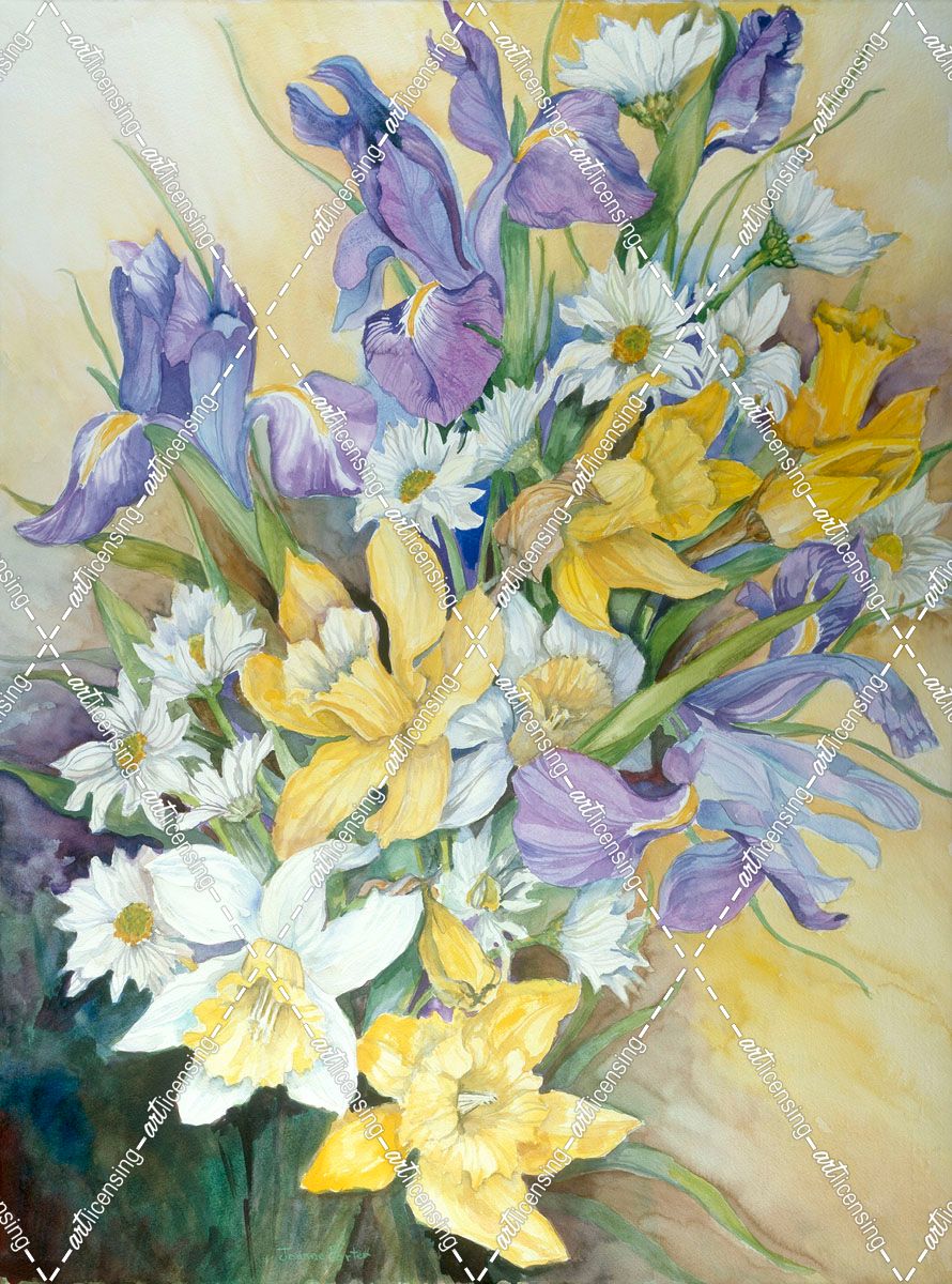 Iris, Daisies, And Daffodils