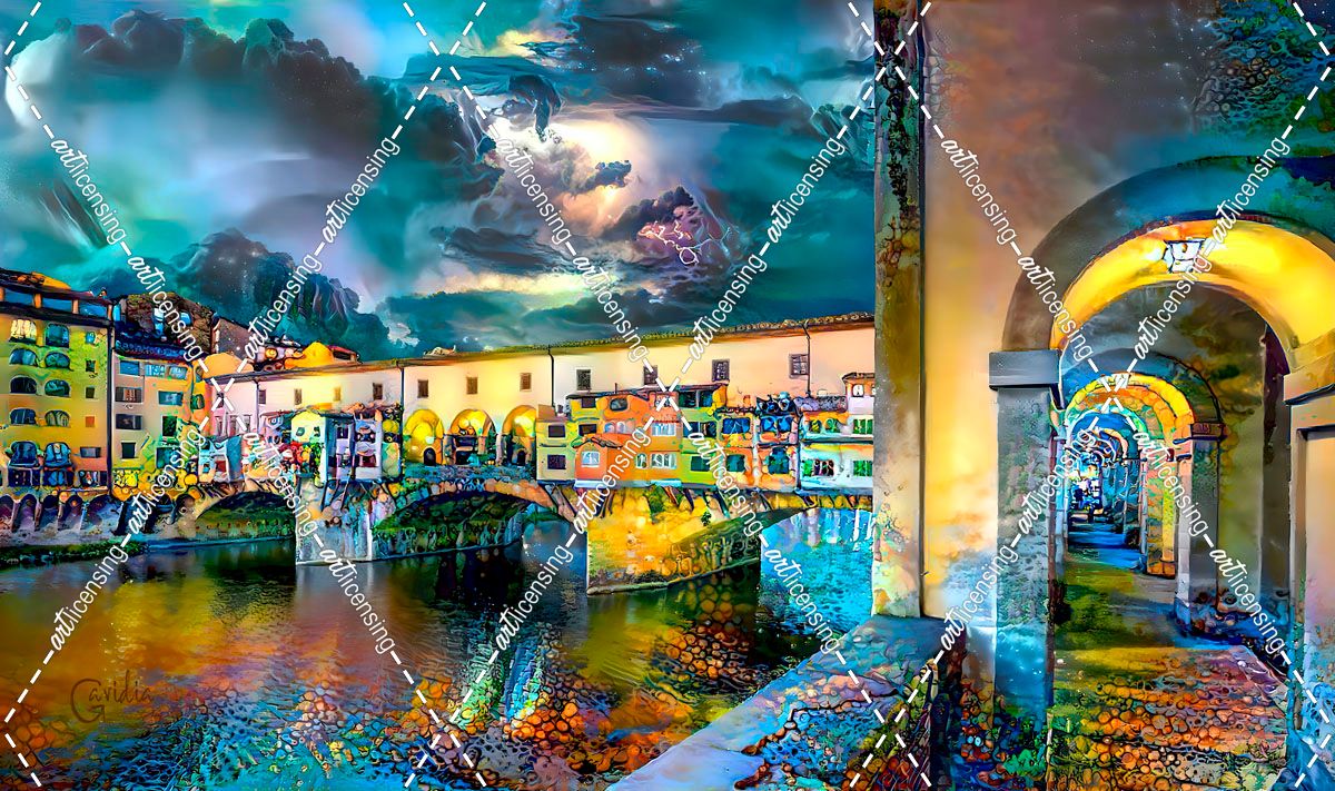 Italy Florence Ponte Vecchio at Night