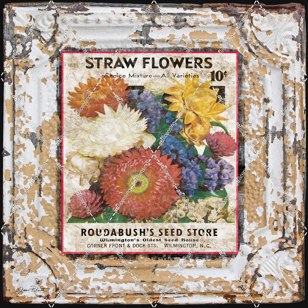 JP0543-Tin Tile-Straw Flowers