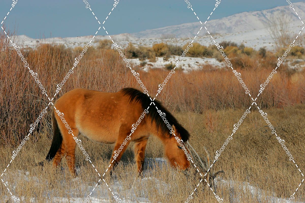 JQ4P3038 Mustang In The Snow, Pryor Mountains, USA