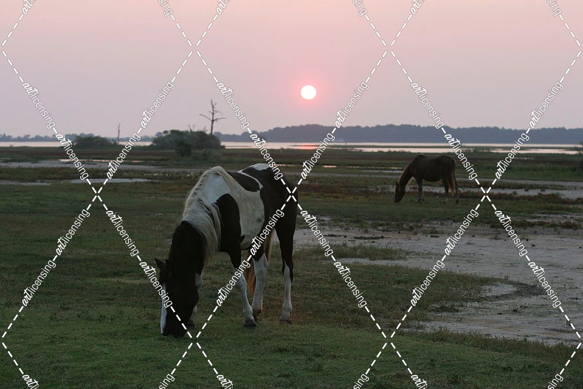 JQ4P3465 Chincoteague Ponies Grazing, Virginia, USA 2007