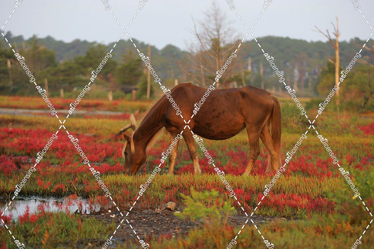 JQ4P3498 Chincoteague Pony Grazing, Virginia, USA 2007