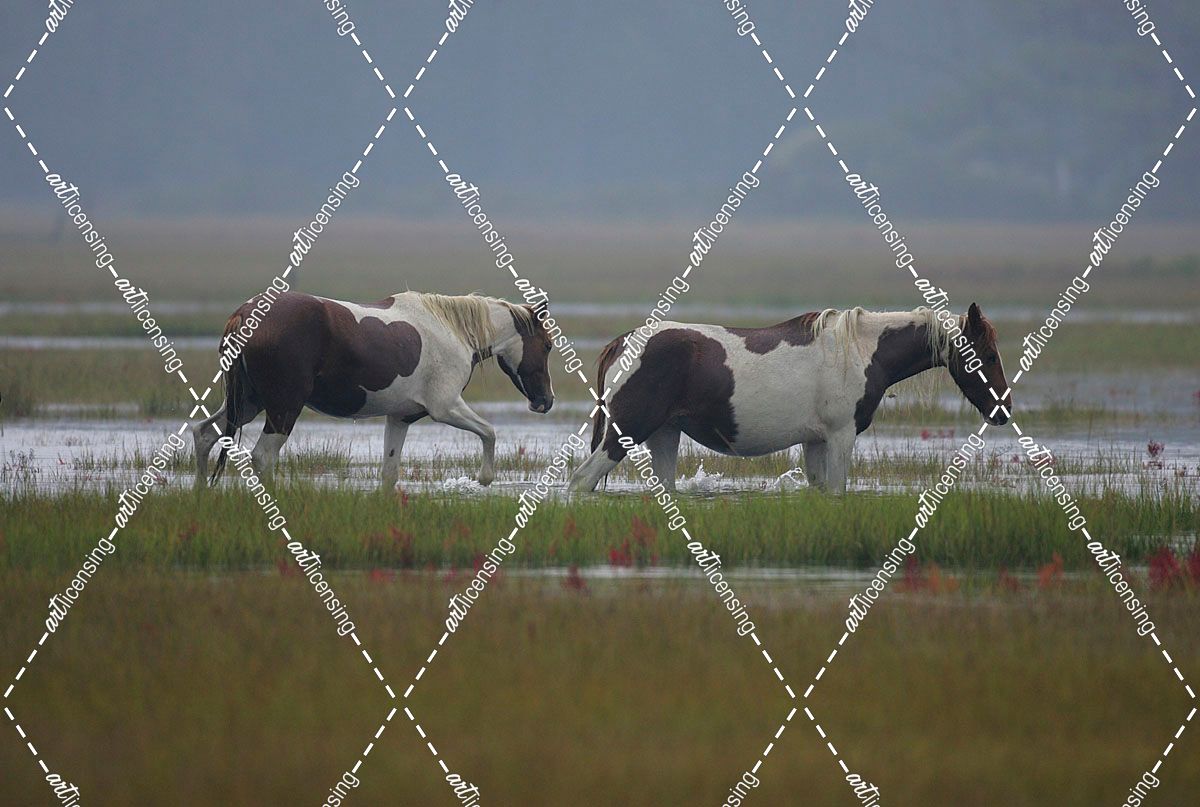 JQ4P3823 Chincoteague Ponies In The Water, Virginia, USA 2007 2