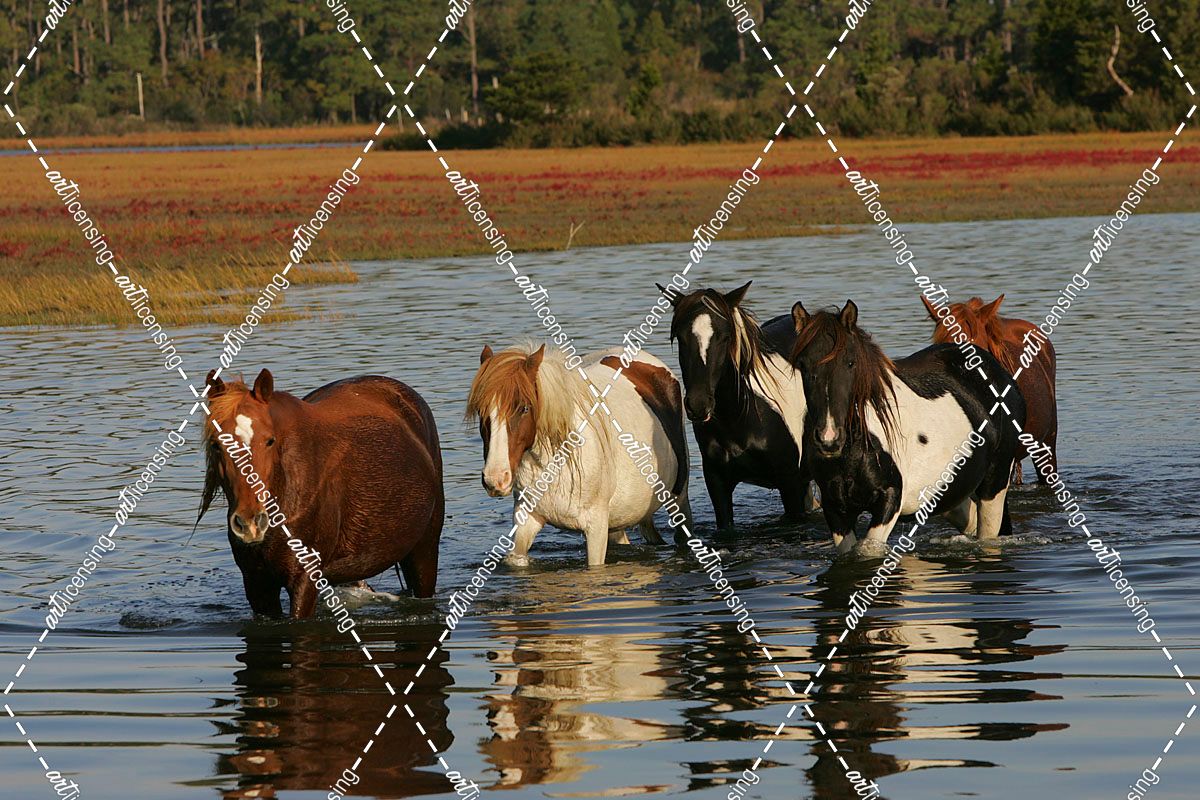 JQ4P7849 Chincoteague Ponies In Water, Virginia, USA 2008