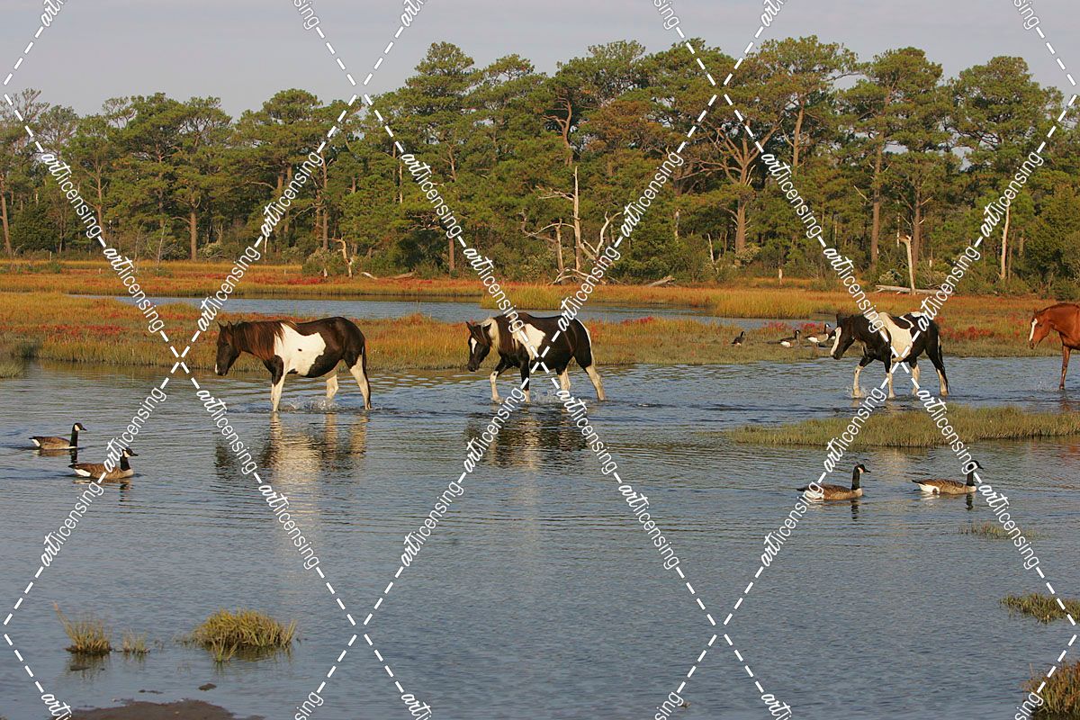 JQ4P7905 Chincoteague Ponies In Water, Virginia, USA 2008