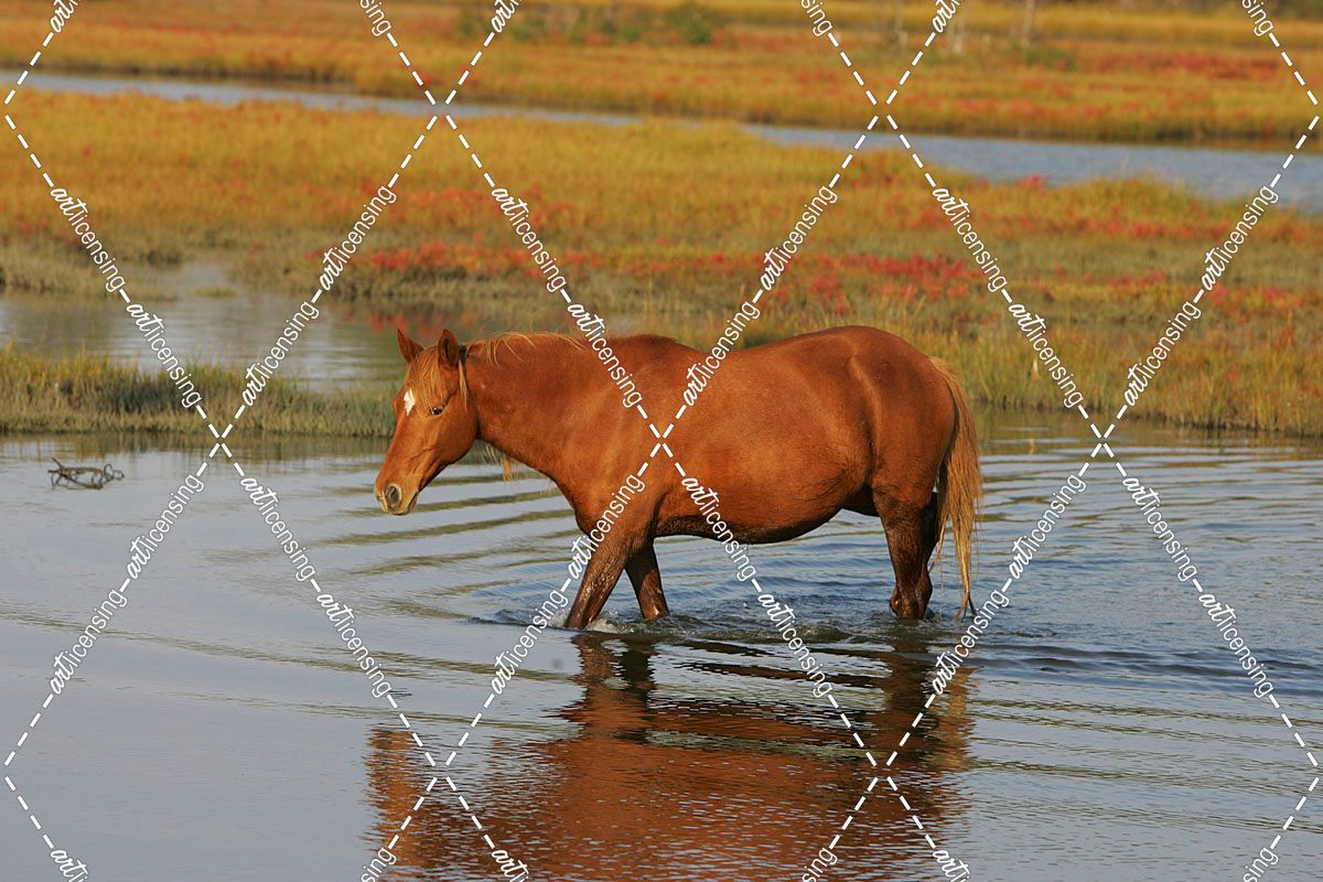 JQ4P7946 Chincoteague Pony In Water, Virginia, USA 2008