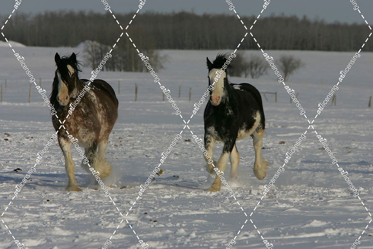 JQ4P8081 Clydesdales In Snow, Joseph Lake Clydesdales, AB