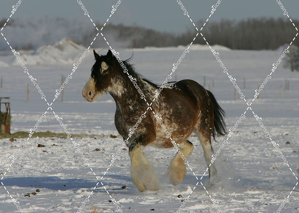 JQ4P8088 Clydesdale In Snow, Joseph Lake Clydesdales, AB