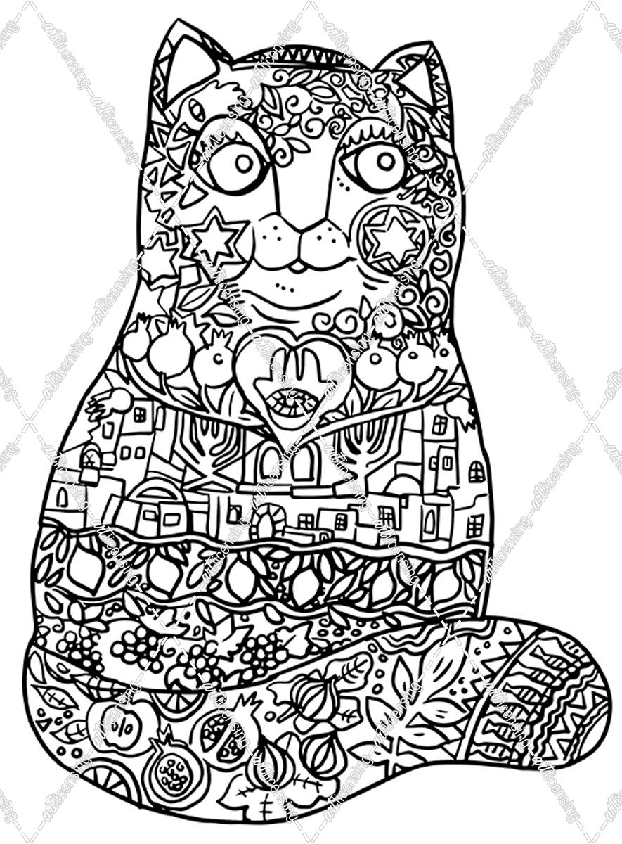 Judaica Folk Cat: LINE ART