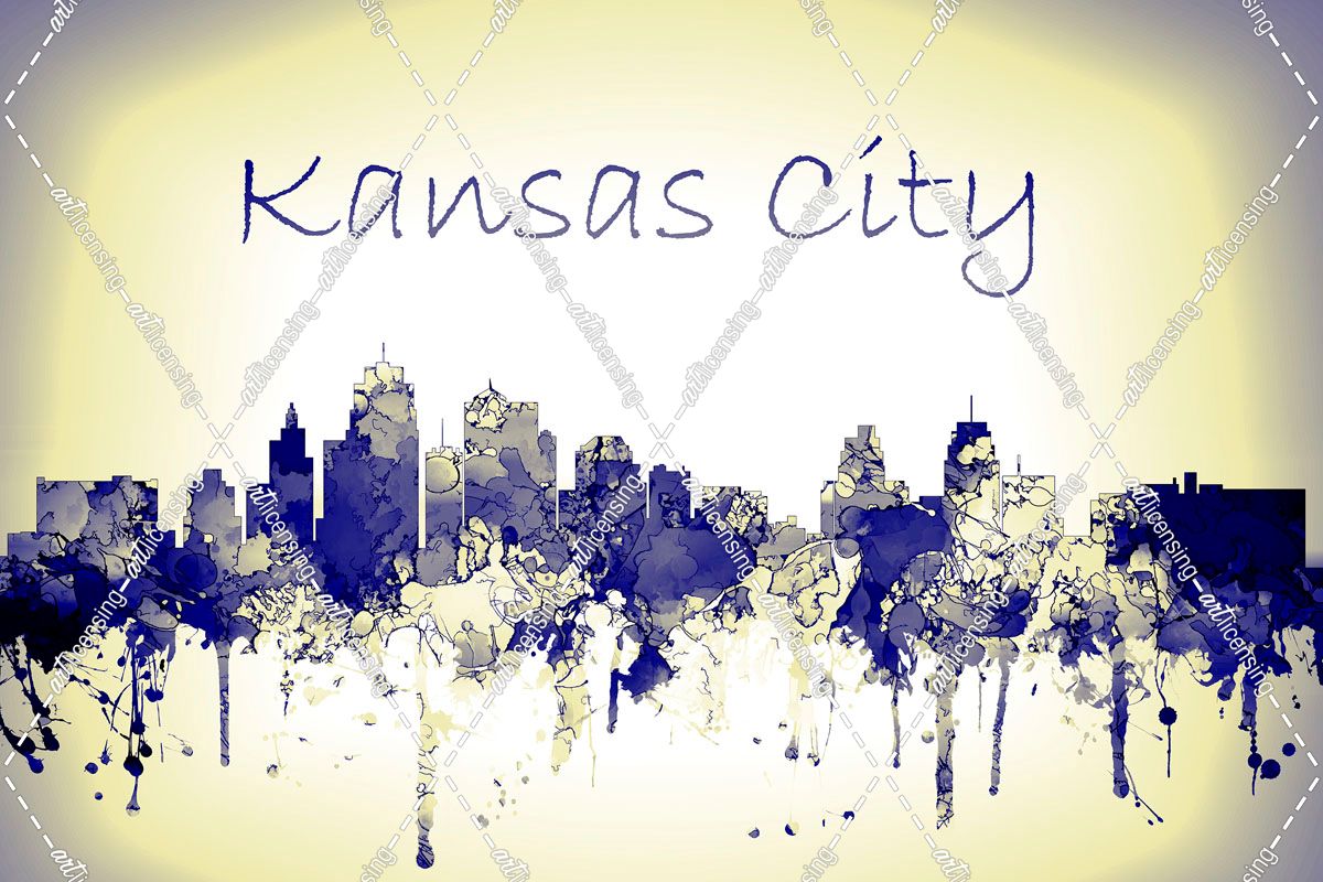 Kansas City Missouri Skyline-Harsh Blue Yellow