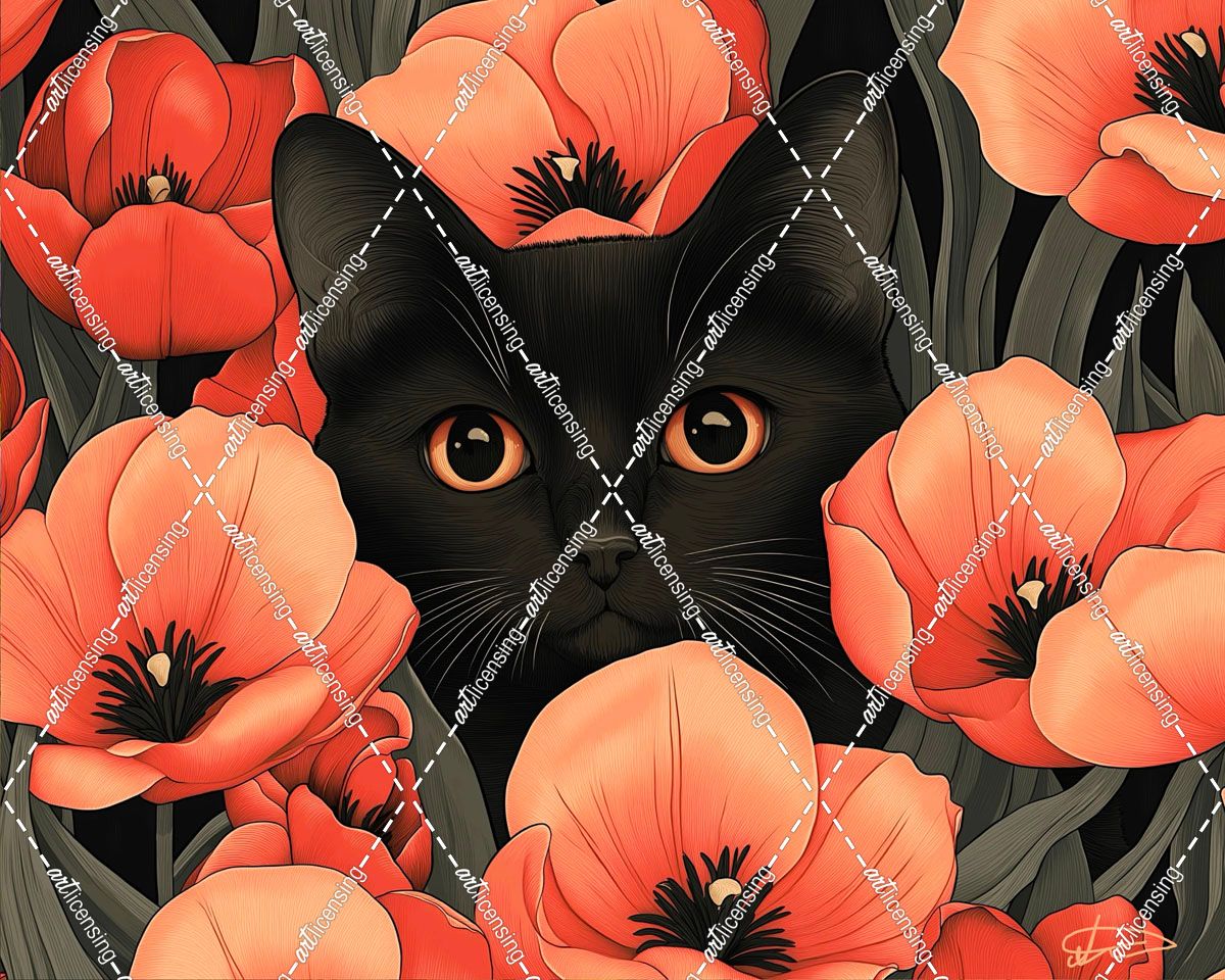 Kitty in Poppies
