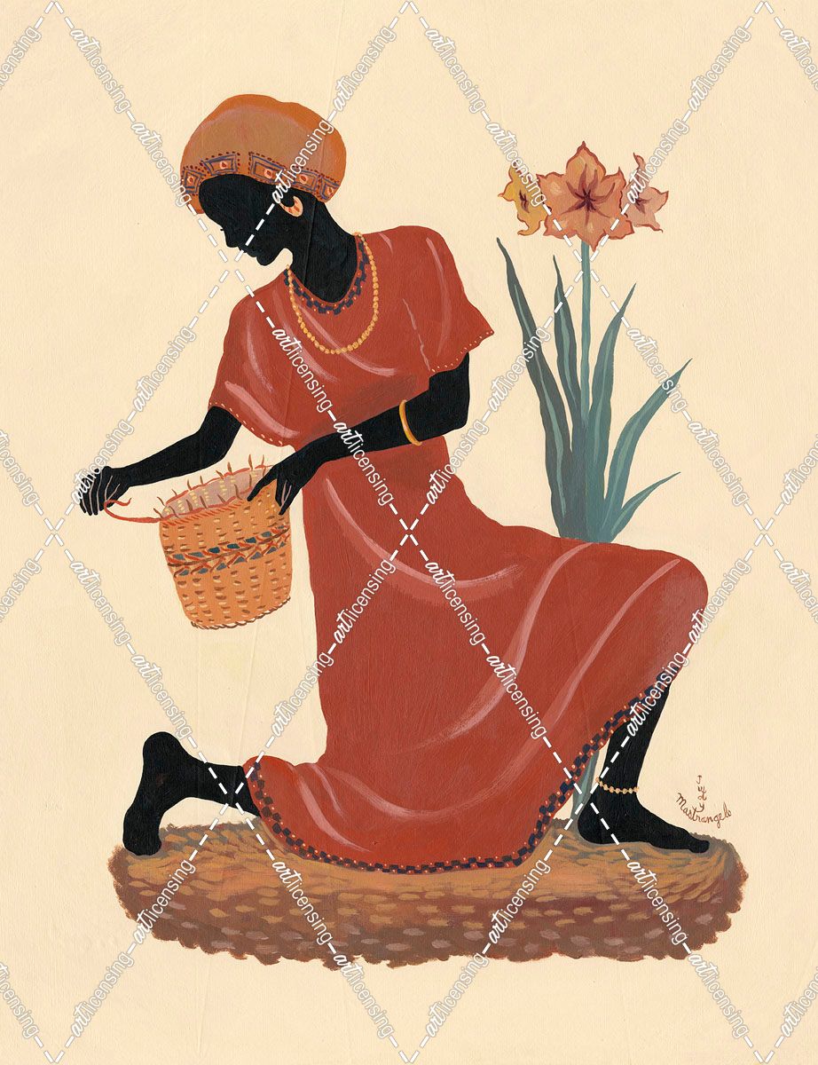 Kneeling Left Weaving Basket – Orange Dress