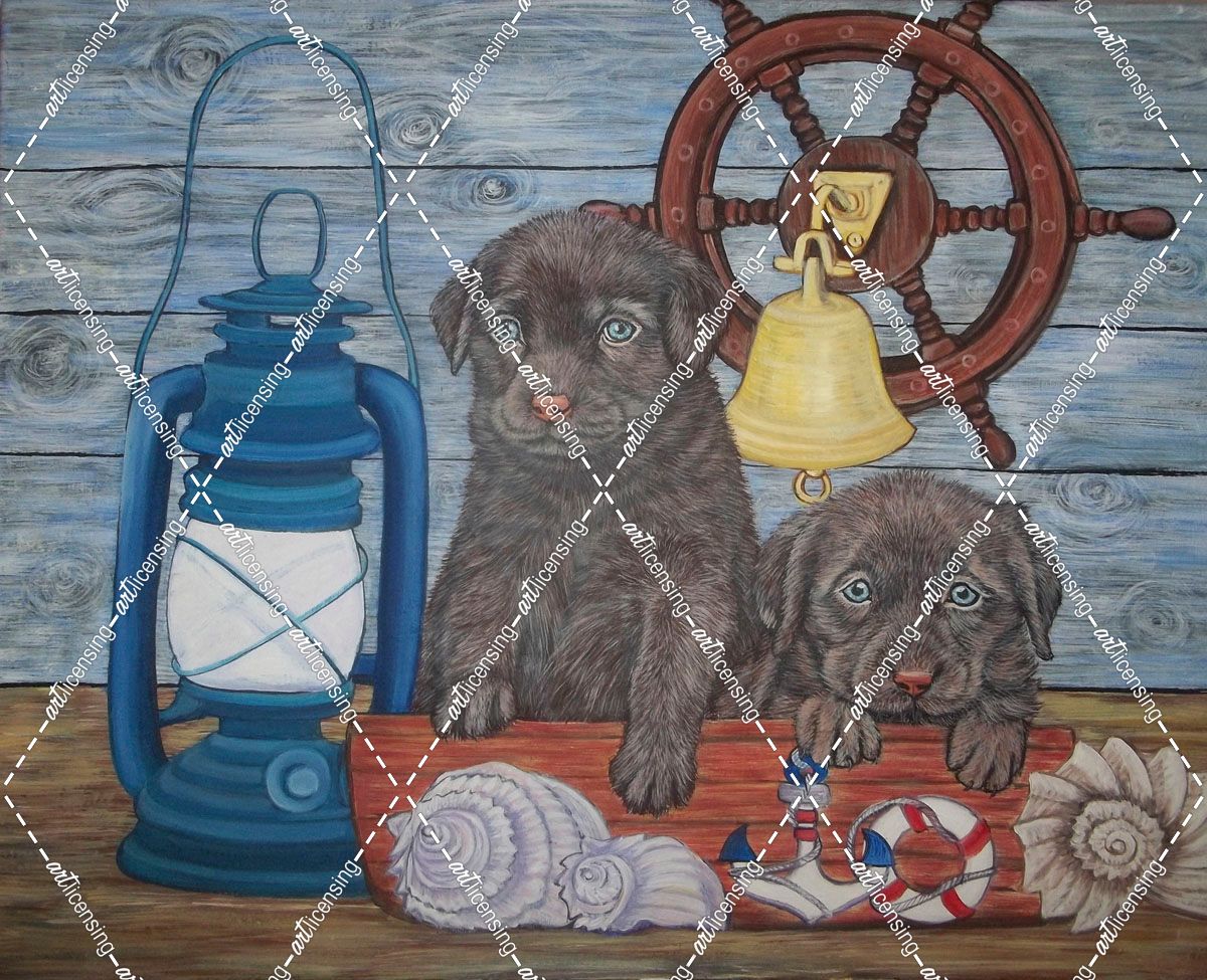 Labrador Puppies And Blue Lantern Lamp