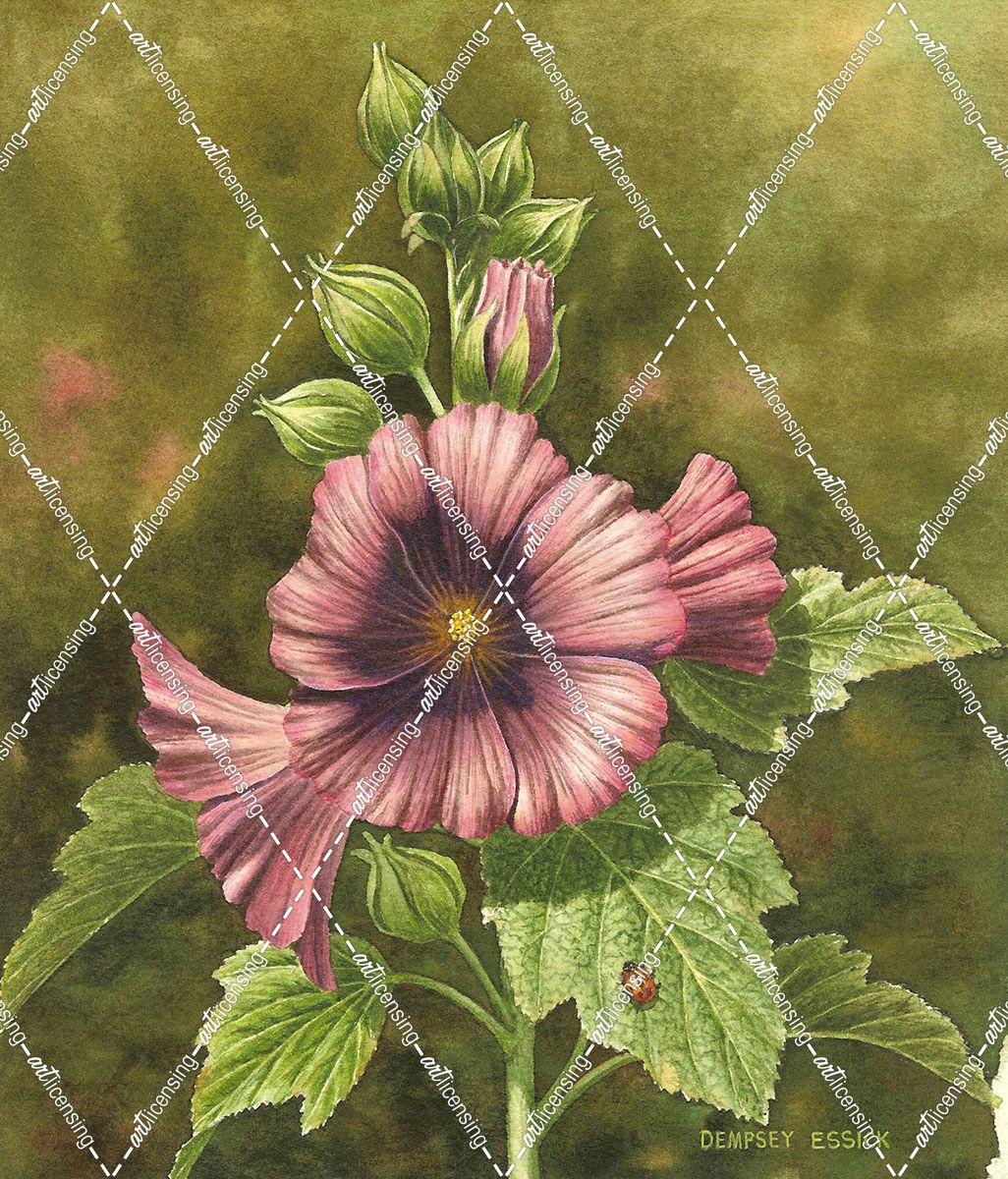 Lady Bug on Hollyhocks
