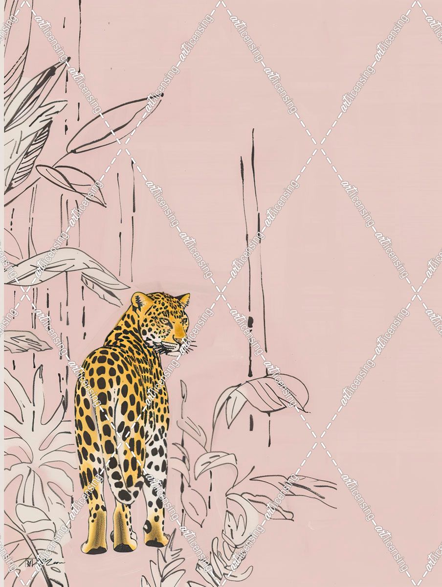 Leopard In Minimalist Pink Background