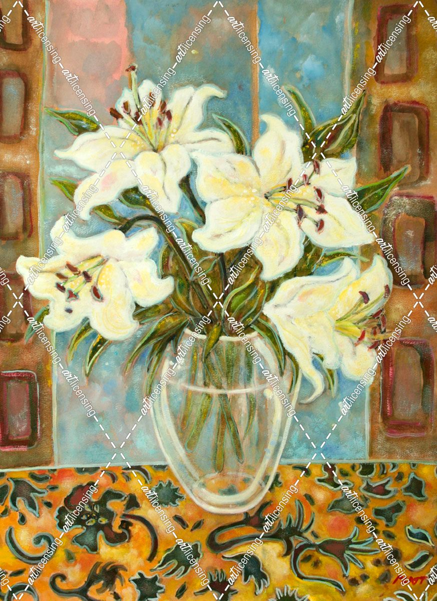 Lilies On Gold Swirl Cloth