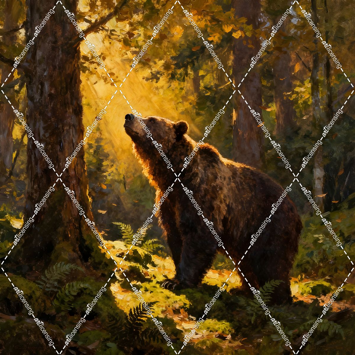 Lone Grizzly Bear In The Forest