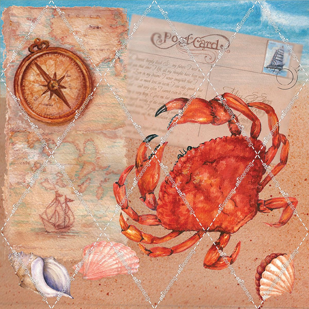 Map-Beach Postcard