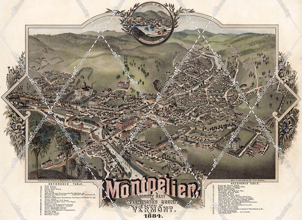 Map Of Montpelier Vt With Reference Table 1884