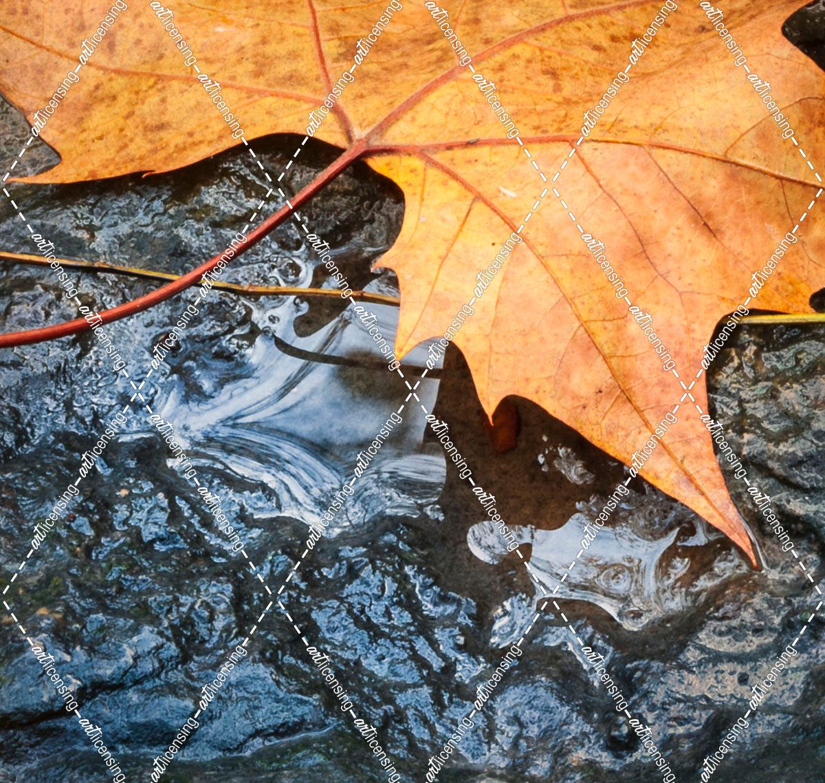 Maple Leaf On Wet Rock