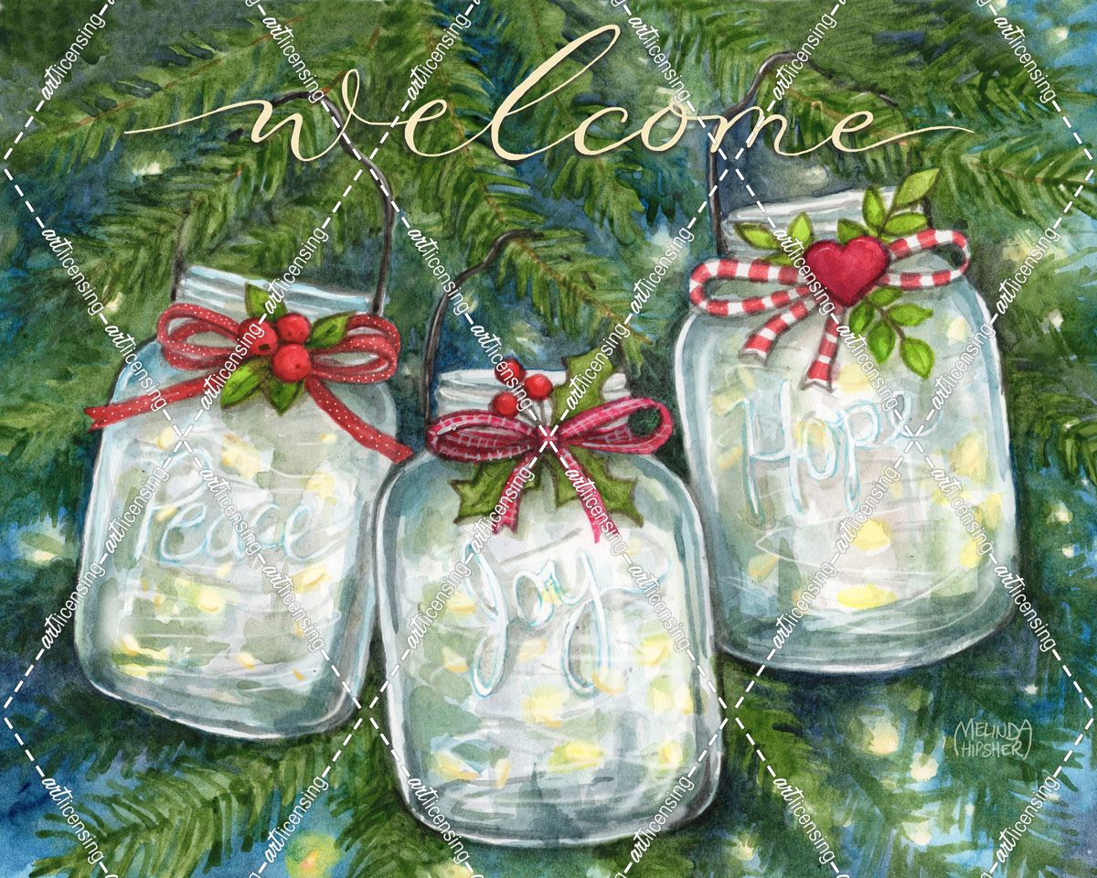 Mason Jars With Peace Joy Hope Welcome