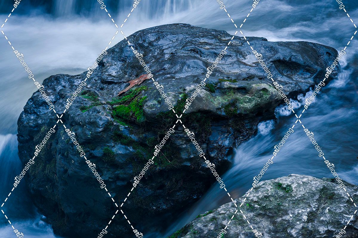Massive Moss Covered Rock Under Waterfalls