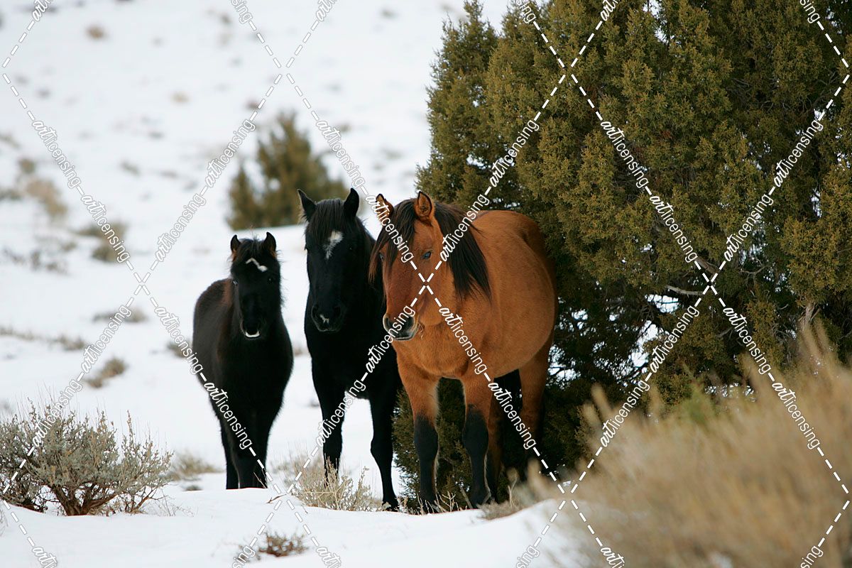 MD3P3127 Mustangs In The Snow, Pryor Mountains, USA