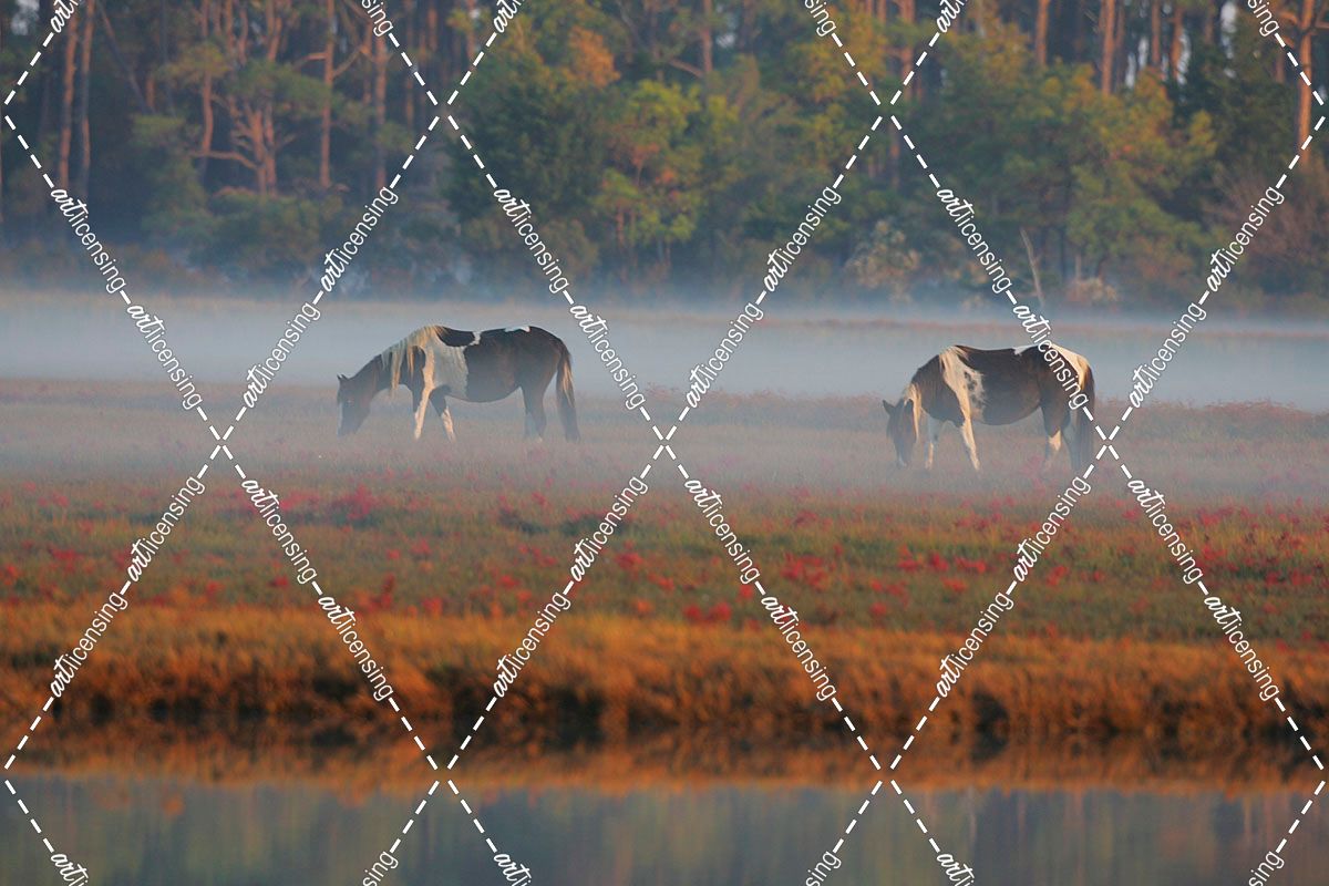 MD3P8059 Chincoteague Ponies Grazing, Virginia, USA 2008